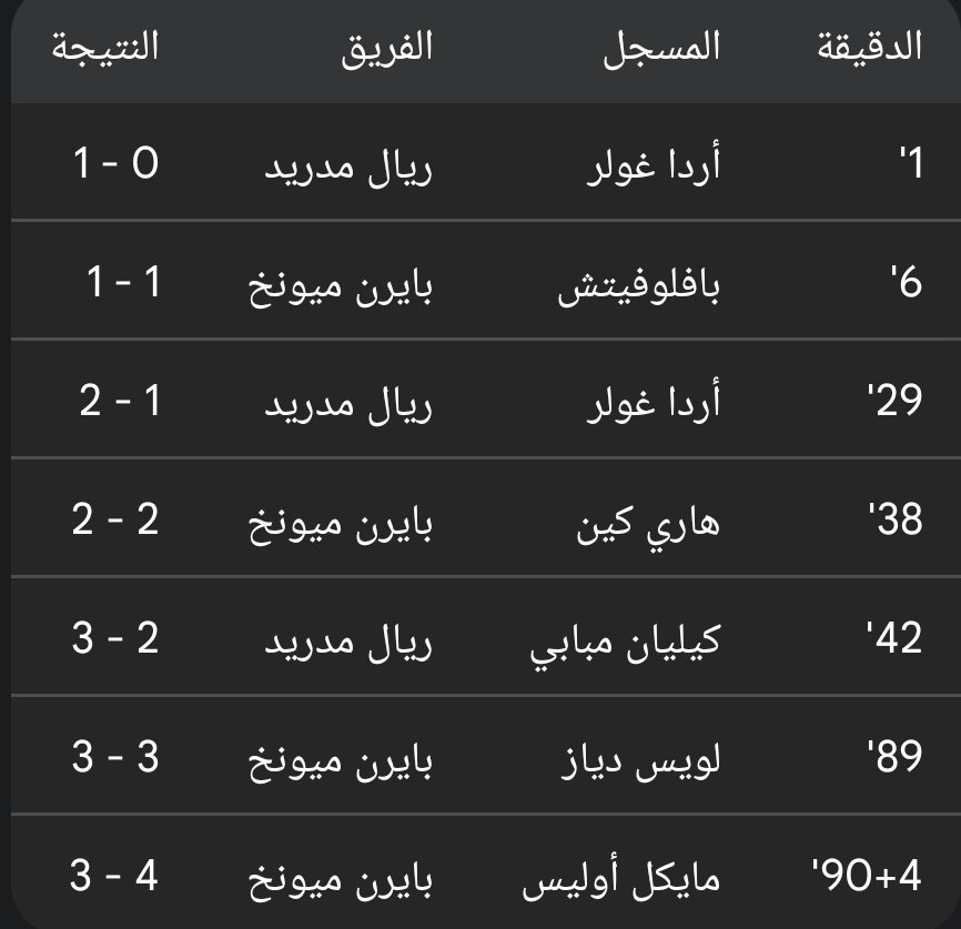 - الدقيقة 90+4: في الوقت القاتل، أطلق مايكل أوليس رصاصة الرحمة بهدف رابع عالمي، معلناً تفوق البايرن وتأهله الرسمي.